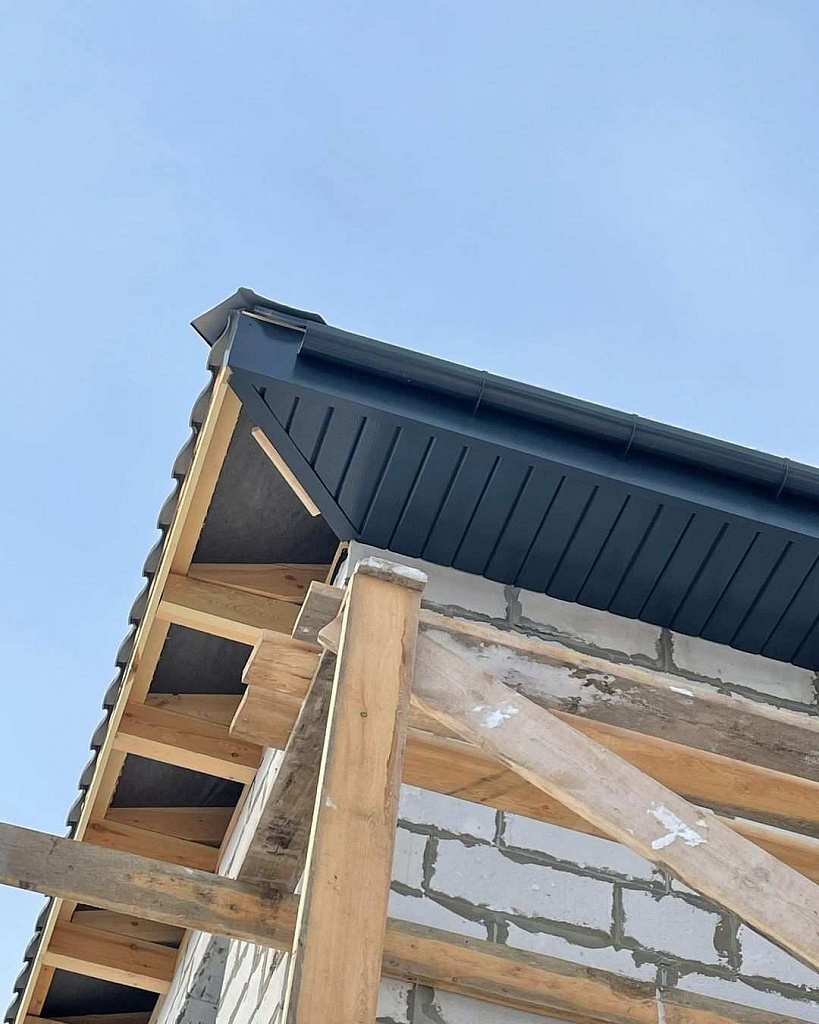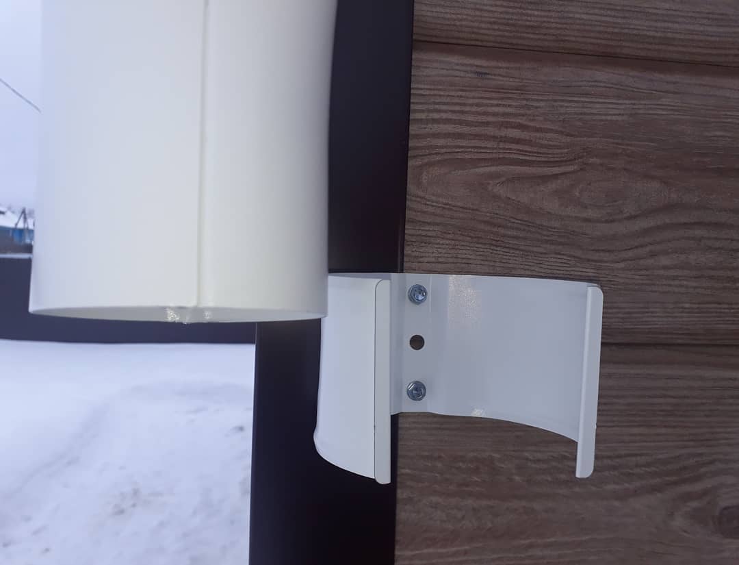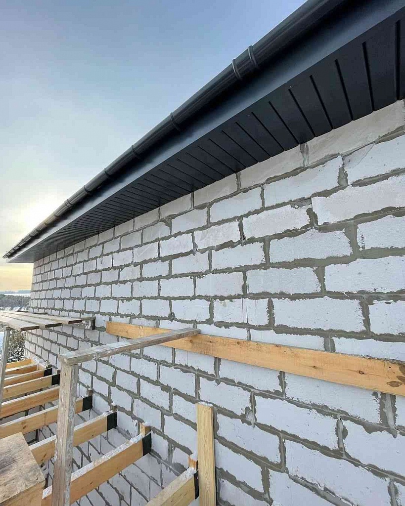 Элементы в виде кронштейнов могут прикрепляться к фронтонной доске, стропильной ноге или к настилу. После их установки осуществляется крепление желобов со стороны фронтонной доски. При монтаже желоба на первом шаге он фиксируется в задних зажимах кронштейнов, а также соединителей и воронок, после чего закрепляется в передних замках этих комплектующих.